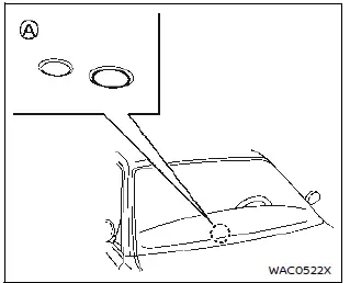 Assurez-vous de ne rien poser sur le capteur optique A situé sur la partie supérieure du rétroviseur intérieur (ou situé au-dessus du tableau de bord, selon les modèles). Ce capteur commande le système de phares automatiques intelligents ; s'il est couvert, le capteur réagit comme s'il faisait sombre et allume les phares.