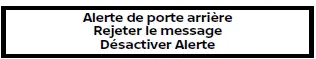 Si le système est activé, ce message apparaît lorsque le système d'alerte de portière arrière est actif afin de rappeler au conducteur de vérifier le siège arrière.