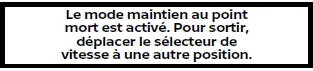 Pour activer le mode de maintien au point mort, patientez sans changer de rapport, puis effectuez à nouveau l'opération.