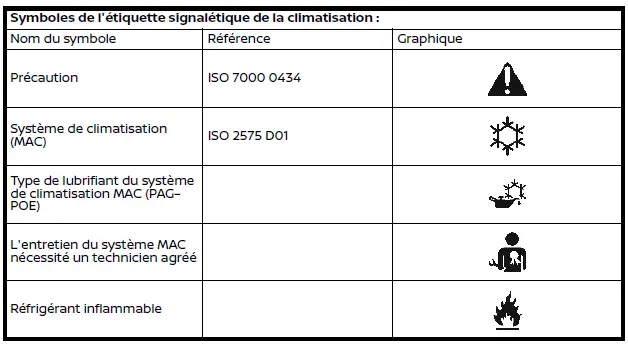 L'étiquette signalétique de la climatisation est apposée sous le capot comme indiqué sur l'illustration.