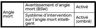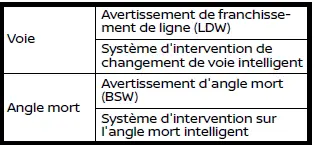 * : Pour utiliser les systèmes d'intervention de changement de voie intelligent et d'intervention sur l'angle mort intelligent, vous devez appuyer sur la commande d'assistance ProPILOT après avoir activé chaque système dans le menu de réglages.